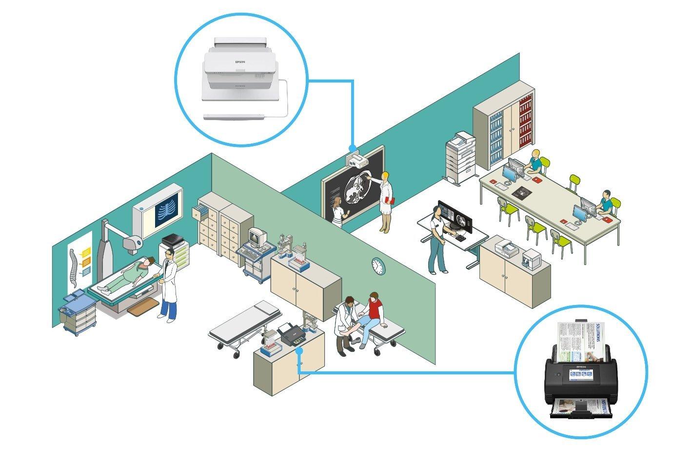 Technologia firmy Epson sprawia, że procesy robocze pracowników opieki zdrowotnej są prostsze i bardziej wydajne. Pomaga to zaoszczędzić czas i zasoby oraz umożliwia pracownikom pracę w różnych zespołach i szybsze rozwiązywanie problemów. Usprawnienie przepływu pacjentów i procesów dzięki zintegrowanym urządzeniom, które mogą łatwo i bezpiecznie skanować, wyświetlać i drukować, prowadzi również do szybszej opieki nad pacjentem.