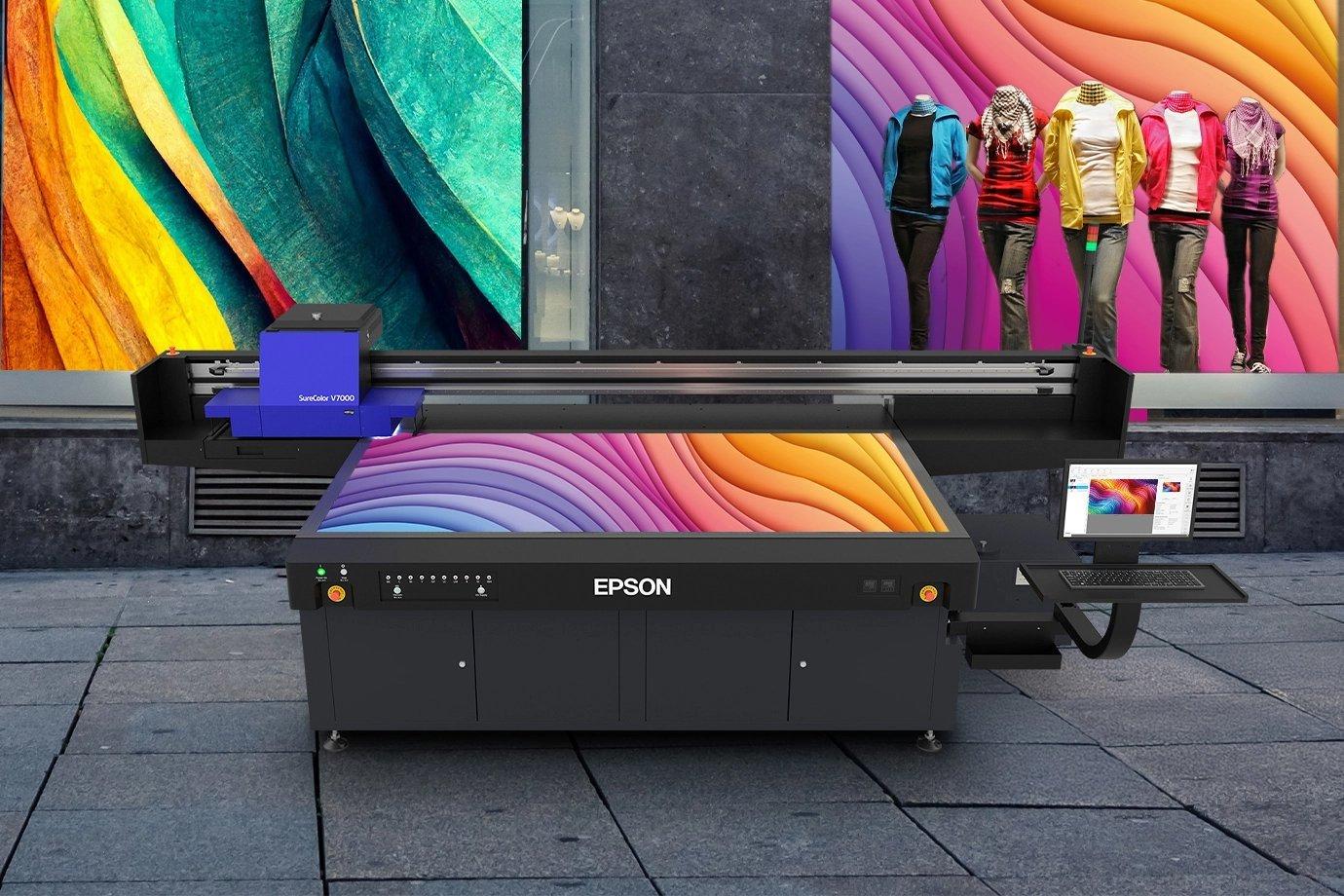Drukarki firmy Epson z serii SC-V są używane do drukowania szyldów i materiałów ekspozycyjnych na różnych powierzchniach, takich jak płótno, winyl, wystawy sklepowe, panele reklamowe, opakowania i wiele innych.
